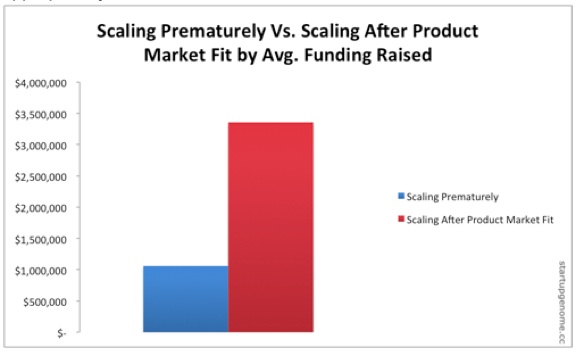 下面的兩張圖表顯示,在等到產(chǎn)品適應(yīng)市場(chǎng)之后再進(jìn)行擴(kuò)張的創(chuàng)業(yè)公司與過(guò)早擴(kuò)張公司相比,籌到的資金是后者的3.2倍,用戶增長(zhǎng)的速度是后者的1.5倍。有趣的是,過(guò)早擴(kuò)張的公司最后花的時(shí)間和適時(shí)擴(kuò)張的公司一樣多,但是效果卻打了折扣。欲速則不達(dá)。